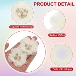 Unique Bargains Rhinestone Pearl Chiffon Flower For DIY Craft Wedding Party 10 Pcs