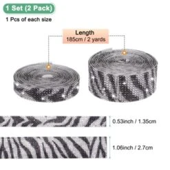 Unique Bargains Rhinestone Zebra Print Flexible Durable Ribbon 0.5/1.1 Inch X 2 Yards 2 Rolls