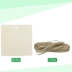 Unique Bargains Rounded Rectangle Blank Wood Tags With Hole And 32.8 Ft Rope 20 Pcs