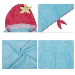 Unique Bargains Soft Absorbent Coral Fleece Hooded Towel For Bathroom Classic Design 53″x31″ Light Blue 1 Pc