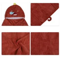 Unique Bargains Soft Absorbent Coral Fleece Hooded Towel For Bathroom Classic Design 53″x31″ Wine Red 1 Pc