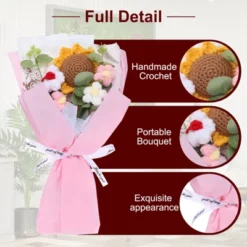 Unique Bargains Handmade Knitted Vibrant Color Low-Maintenance Artificial Flowers Brown