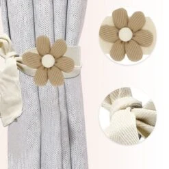 Unique Bargains Flower Curtain Ties For Drapes Khaki Beige 2pcs