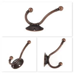 Unique Bargains Wall Mounted Clothes Coat Hat Metal Vintage Style Double Hooks Bronze Tone 5 Pcs