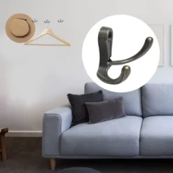 Unique Bargains Family 2 Hooks Wall Mounted Towel Clothes Rack Hooks And Hangers Silver Tone 1 Pc