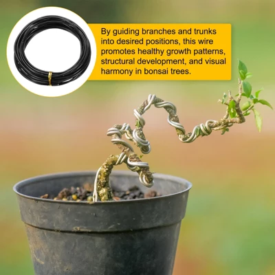 This bonsai training wire is designed for shaping and fixing plants, making it ideal for indoor bonsai pots, garden branches, and leaves. Additionally, it can be used for furniture, handicraft decoration, and handmade DIY designs. Made from durable aluminum material, this wire features an anodized coating for rust resistance. Its flexibility allows for easy bending and shaping according to the desired form of the bonsai or branches. Simply wrap the aluminum wire around the bonsai, branches, or flower stems to facilitate plant growth and shaping.