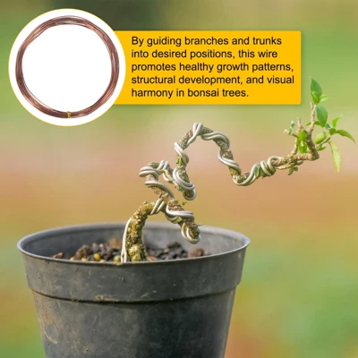 This bonsai training wire is designed for shaping and fixing plants, making it ideal for indoor bonsai pots, garden branches, and leaves. Additionally, it can be used for furniture, handicraft decoration, and handmade DIY designs. Made from durable aluminum material, this wire features an anodized coating for rust resistance. Its flexibility allows for easy bending and shaping according to the desired form of the bonsai or branches. Simply wrap the aluminum wire around the bonsai, branches, or flower stems to facilitate plant growth and shaping.