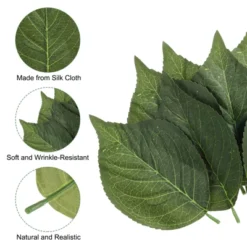 These artificial silk hydrangea leaves are ideal for enhancing flower arrangements and creating wedding bouquets, wreaths, DIY crafts, bookmarks, or home party decorations. They can also be used as ornaments on bedside tables, desks, and living room shelves, adding a touch of sophistication and elegance. Made from silk cloth with a shiny look, these leaves have a wrinkle-resistant texture that won’t fade or wither, ensuring long-lasting appeal. Their natural and realistic appearance makes them a great addition to any flower arrangement, home decor, or arts and crafts project, providing a touch of freshness and life. These leaves have a wire inset to keep them upright and can be paired with any flower to create a bouquet or placed alone in a vase for decoration. Handle with care to maintain their lifelike appearance, and note that there may be a slight color difference due to natural lighting and display resolution.