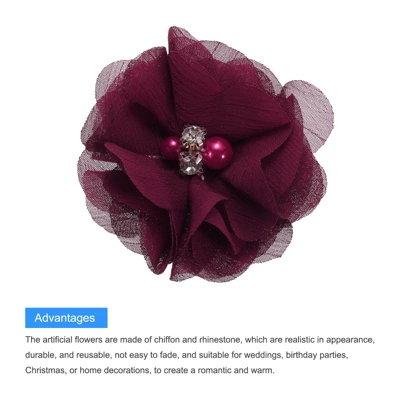 - The artificial flowers are made of chiffon and rhinestone, which are realistic in appearance, durable, and reusable
