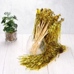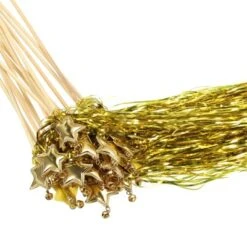 The beautiful and romantic fairy wands can add a magical touch to weddings, bridal showers, send-offs, birthdays, party favors, and other special events. Also, a fun accessory for costumes, dress-up play, or cheerful holiday celebrations. Made of lightweight glittery metallic foil and a star-shaped ornament, the wooden wand handle is comfortable to hold and wave around. The colorful ribbons create an enchanting and playful appearance, while the jingle bells add a melodious and joyous sound as they wave. Hold the wand by the handle, ensuring a secure grip. Wave the wand gently in the air to create flowing movements with the ribbons. Keep them away from open flame or heat sources to prevent wear. Ensure that the ribbons are securely attached to the wand to avoid potential harm.
