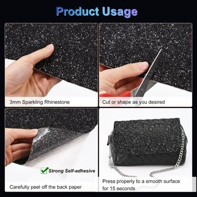 The bling rhinestone sticker is self-adhesive, high-temperature resistant, not easy to fall off, and suitable for home staging, weddings, handcrafts, suitcases, laptops, notebooks, books, gifts, hats, furniture decoration, etc. The bling rhinestone sticker is with these sparkling rhinestones, has a strong adhesive, and can be easily pasted on any smooth surface. This bling rhinestone sticker makes your crafts more eye-catching. There is adhesive in the composite layer, cut or shape as you desire, carefully peel off the back paper, and press properly to a smooth surface for 15 seconds.