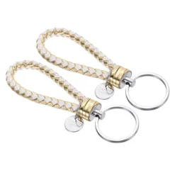 Made of durable PU leather, this woven leather keychain features a stylish design and fine workmanship, making it convenient for both storage and portability. Available in a variety of colors, it’s easy to sort and distinguish your keys. Instructions: Open the clasp and attach the desired item. This woven keychain is versatile and can be used to attach keys, ID cards, badge holders, business cards, wallets, and more. It’s perfect for the office, home, indoors, and outdoors, and can also be used as a gift or for various celebrations. Important Note: This keychain is not designed to be stretched or worn on the wrist.