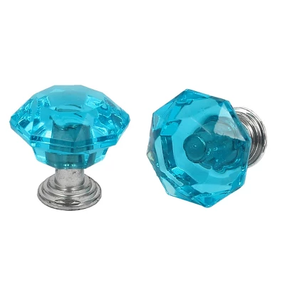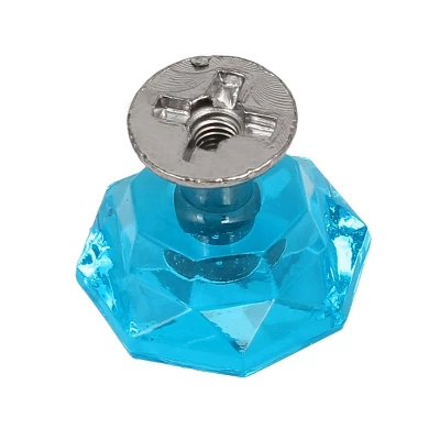 Plastic pull handle in silver tone and clear blue color.Widely used for furniture, such as door, cabinet, cupboard, drawer, dresser and so on.Screws are included here. It is made of Plastic Material. Overall Size: 1″ x 0.87″(D*H); Round Base Diameter: 0.55″. Package Content: 6pcs x Pull Handle, 6pcs x Screw.