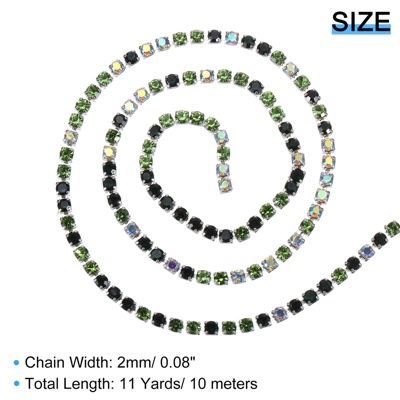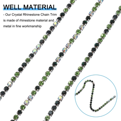 Crafted from rhinestone and metal, this piece is finely crafted for durability and features an electroplated finish that resists rust and oxidation. Its dense prongs on the bottom and imitation diamonds on the top prevent it from falling off. Its bright luster and vibrant colors add a touch of fashionable charm. Easy to use, this sewing crystal rhinestone diamond chain charm can be easily cut to any length, then glued or sewn to complete your handmade decoration. It’s versatile and can be used on clothing, shoes, handbags, wine bottles, phone cases, hairpins, photo frames, bouquets, wedding dresses, and various holiday decorations.