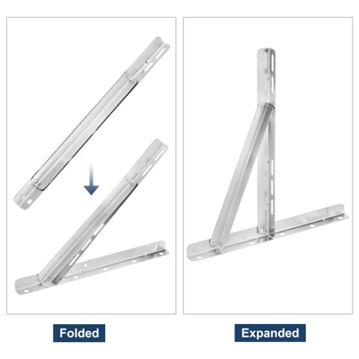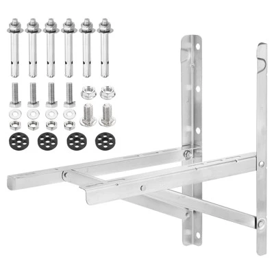 The air conditioner bracket is made of thickened stainless steel, which is anti-rust, has a strong bearing capacity, is anti-oxidation, and has weather resistance. Triangular bracket, good stability, can hold bulky equipment. The foldable design makes installation effortless too. The mini split AC bracket raises the condensing unit above the ground to prevent damage caused by dust, debris, snow, flooding, or other accidents, effectively protecting your air conditioner. Easy to assemble, the air conditioner bracket is connected with rivets, mount it securely to the wall with the stainless steel expansion screws, and then place the equipment on and fix it with the screws provided. This mini split AC stand is suitable for air conditioners and heat pumps. Applicable for units with capacity ranging, not exceeding a maximum weight capacity of.
