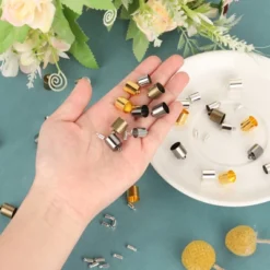 These cord end caps are crafted from durable copper, ensuring they remain sturdy and do not fade or rust over time. The barrel cap design includes a ring at the top, making it easy to add connectors such as open rings or clasps for various DIY projects. To use, simply apply glue to the bottom of the cord end, insert the cord into the cap, and use pliers to secure it tightly. These caps are versatile and suitable for a range of crafting projects, including chokers, bracelets, pendants, necklaces, and tassels, allowing for the creation of unique and personalized gifts.