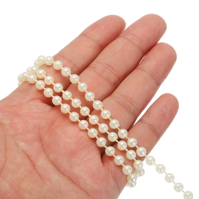 Made of plastic and resin, this garland boasts exquisite craftsmanship and a beautiful appearance. The pearls are round and have a beautiful, lustrous finish. They can be cut to any desired length, ensuring the pearls remain intact. This pearl beaded garland can be used as a decoration, adding a touch of beauty and elegance to parties, weddings, and homes, adding a touch of joy to your life. It can also be used to decorate tables, vases, and anything else you need to decorate.