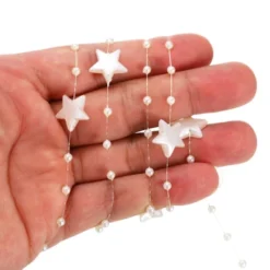 Made of plastic and resin, this garland boasts exquisite craftsmanship and a beautiful appearance. The pearls are round and have a beautiful, lustrous finish. They can be cut to any desired length, ensuring the pearls remain intact. This pearl beaded garland can be used as a decoration, adding a touch of beauty and elegance to parties, weddings, and homes, adding a touch of joy to your life. It can also be used to decorate tables, vases, and anything else you need to decorate.