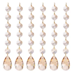 These crystal beads are perfect for adding a touch of elegance to your decor. With their unique teardrop and octagonal design, they capture light beautifully, creating stunning light refractions that enhance any room’s visual appeal. Made from quality crystal, these beads are resistant to fading and darkening, ensuring long-lasting shine and sophistication. Ideal for transforming chandeliers, decorating Christmas trees, wedding centerpieces, or creating jewelry and necklaces. Suitable for weddings, parties, and everyday use, they can also be used in windows, gardens, and outdoor spaces. To maintain their pristine condition, avoid scratching and store them in a cool, dry place.