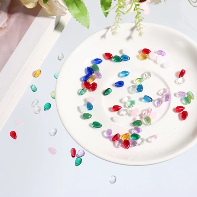 These teardrop glass beads with vertical holes are great for handmade jewelry, beaded necklaces, DIY bracelets, earrings, pendants, clothes decorations, charms, and hair accessories, also perfect for DIY candle holder pendants, beaded curtains, and wedding decorations. Advantage: The teardrop glass beads are made of good quality glass, 1mm oval-shaped drilled hole that can be paired with hooks, jump ropes and pins to become earrings, bracelets and more. Instruction: You could use these beads to make various kinds of crafts and jewelry with your imagination. NOTE: Please choose the appropriate size before purchasing.