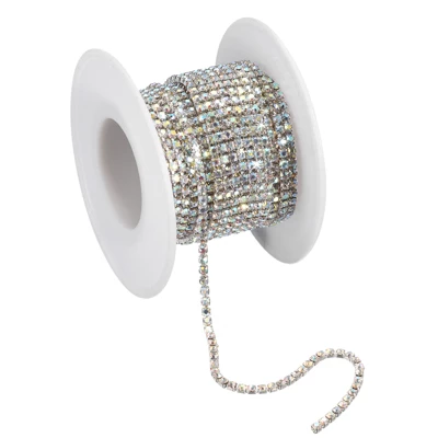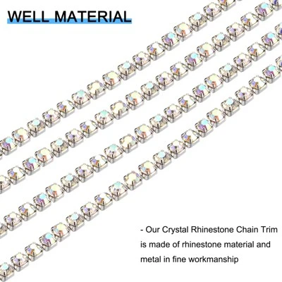 Crafted from rhinestone and metal, this piece is finely crafted for durability and features an electroplated finish that resists rust and oxidation. Its dense prongs on the bottom and imitation diamonds on the top prevent it from falling off. Its bright luster and vibrant colors add a touch of fashionable charm. Easy to use, this sewing crystal rhinestone diamond chain charm can be easily cut to any length, then glued or sewn to complete your handmade decoration. It’s versatile and can be used on clothing, shoes, handbags, wine bottles, phone cases, hairpins, photo frames, bouquets, wedding dresses, and various holiday decorations.