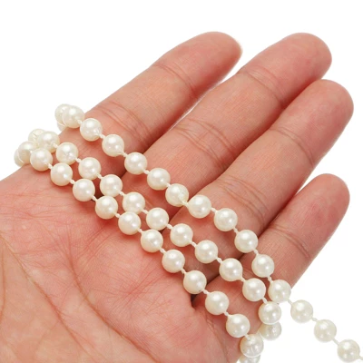 Made of plastic and resin, this garland boasts exquisite craftsmanship and a beautiful appearance. The pearls are round and have a beautiful, lustrous finish. They can be cut to any desired length, ensuring the pearls remain intact. This pearl beaded garland can be used as a decoration, adding a touch of beauty and elegance to parties, weddings, and homes, adding a touch of joy to your life. It can also be used to decorate tables, vases, and anything else you need to decorate.