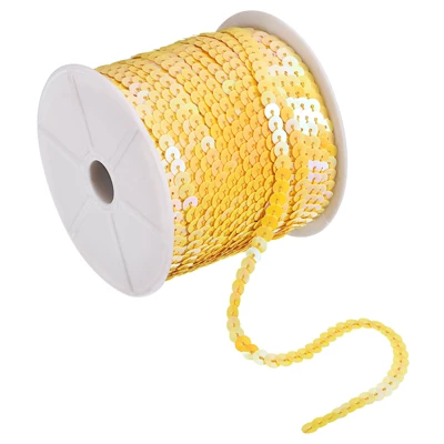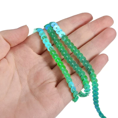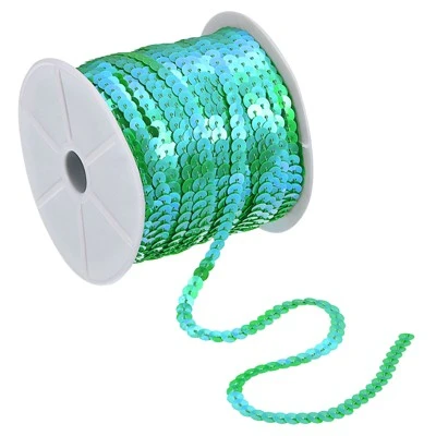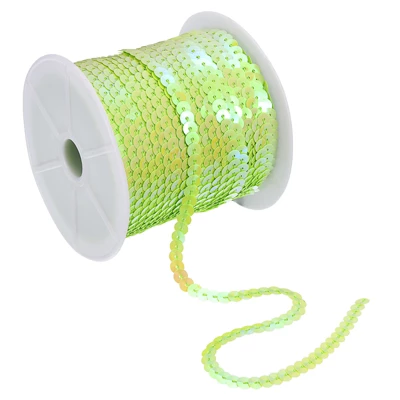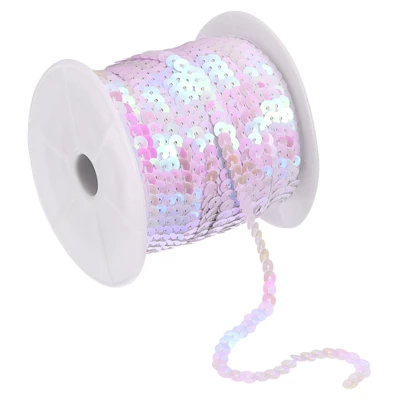 The sequin trim is made of durable, waterproof PVC material, ensuring long-term use without fading. The vibrant, shimmering sequins sparkle in bright light and sunlight, adding to the appeal. The flat, circular design and pre-strung nature make the sequin trim neat and easy to carry and sew. Easily cut to the desired length with scissors, coordinate with other colors and accessories, and let your imagination create fun creations. It can be used in a variety of sewing projects and DIY crafts, making it perfect for apparel such as prom dresses, shoes, bags, hats, and more. It can also be used for decorative patches, prom crafts, bows, accessories, gift wrap, scrapbooking, and cards.