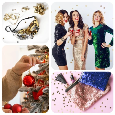 - Vibrant sequins shine in light for eye-catching effects