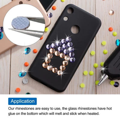 This hot-drill is perfectly cut, highly clean, and super bright; each rhinestone is precision cut on multiple sides, sparkling under the light, and becomes a beautiful decoration. There is hot glue on the bottom of the glass rhinestone, which will melt and stick after heating, and the operation is very simple; you can use a household iron or a hot-drill applicator to fix the flat-bottomed rhinestone; another way to use it is to use excess glue without heating; practice before applying will help, and make sure the glue is completely melted to get a strong stickiness. These hot-drills have a wide range of applications, such as clothes, shoes, bags, mobile phone cases, glasses, DIY crafts, etc., presenting your imagination or ideas into real project products or gifts.