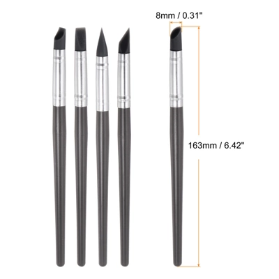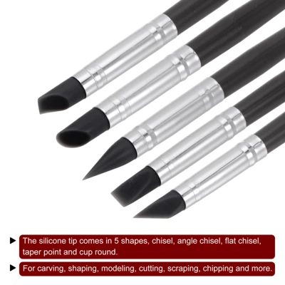 The durable silicone tip provides control and precision, while the smooth handle ensures comfort during long periods of use. Five different shapes of the silicone tip, including cup chisel, angle chisel, flat chisel, taper point, and cup round, allow for versatile applications such as carving, shaping, modeling, cutting, scraping, and chipping. These clay sculpting tools are ideal for various art forms, including oil painting, pastel scrubbing, and clay sculpture, making them suitable for both home and outdoor use. The soft silicone tip is elastic, durable, and easy to clean, ensuring long-lasting performance.