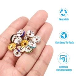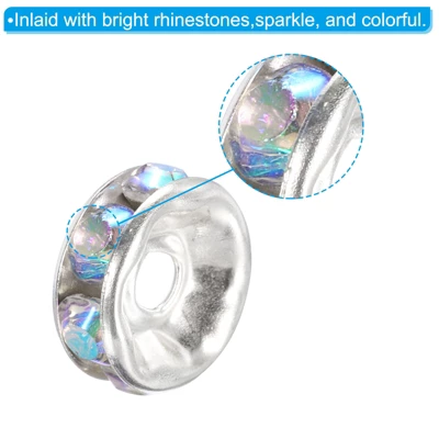 These rhinestone beads are ideal for creating charm bracelets, pendants, earrings, keychains, bag chains, and more. Made from durable glass crystal and titanium steel, they offer a long-lasting and sturdy option with a smooth touch. Each bead is inlaid with bright rhinestones, providing a brilliant and colorful sparkle that catches the eye from multiple angles. Designed with large holes, they can be paired with various types of threads such as crystal, nylon, and polyester, inspiring creativity in your jewelry-making projects. Please note there may be slight color variations due to different photography conditions.