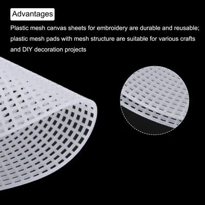The needlepoint blank canvas plastic canvas mesh mat is ideal for various crafting projects, including embroidery, knitting, and crochet. Its versatile design allows for use in making handbags, wreaths, and even as drainage hole covers for pots. This durable plastic mesh is lightweight and can be easily cut to fit specific shapes or sizes, making it suitable for a wide range of DIY decoration projects. Whether creating keychains, bookmarks, or jewelry, this mesh mat provides a sturdy foundation for creative expression.