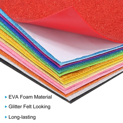 These glitter foam sheets are perfect for various DIY crafts, including card making and classroom projects. They can also enhance office decorations and are suitable for celebrations like birthdays, weddings, and holidays. The foam is made from shiny powder and EVA foam, featuring a smooth backing that ensures a long-lasting adherence to various paper materials. The sheets are designed for easy cutting and shaping, making them ideal for both beginners and experienced crafters. Enjoy creating unique decorations for your home or special occasions with these versatile sheets.