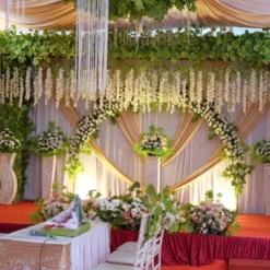 This artificial garland is hand-made, which makes it durable and beautiful. Steps of using: 1. Prepare any space or items that need to be decorated; 2. According to the demand, choose the appropriate style and length of the fake flower vine for cutting adjustment; 3. Use pliers to fix the fake flower vine in the desired position to be decorated, and use thin iron wire or thin wire to fix it 4. It is necessary to pay attention to the orientation and direction of the fake flower vine to make it look natural and beautiful.