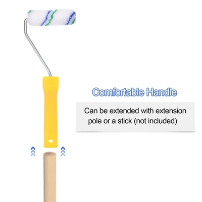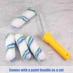 Made from polyester fiber material, they are tightly woven together to create a dense, smooth surface, these roller covers are lightweight and can be used with various types of paint. Suitable for both professional and home DIY users, these roller covers are great for DIY projects, and good for use with oil-based paints and varnishes mini roller covers are easy to clean, providing a significant advantage to users. With its wide usage, these roller covers are suitable for painting small and tight areas with a smooth to semi-rough surface, including walls, ceilings, furniture, cabinets, doors, trim, baseboards, corners, floors, and more. It comes with a painted handle as a set, meeting painting needs as a great tool for painters or home users. NOTE: Keep your roller cover in good condition by removing the frame after use and washing off any paint residue. Be sure to not overload the roller with paint for better results, always maintain a wet edge, and do not overwork the paint with your brush and roller.