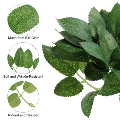 These artificial rose leaves are crafted from silk cloth, offering a shiny and wrinkle-resistant texture that ensures they won’t fade or wither. They provide a natural and realistic look, making them ideal for flower arrangements, home decor, or arts and crafts. The leaves feature a wire inset to keep them upright, allowing you to pair them with any flower to create a bouquet or place them alone in a vase. Perfect for wedding bouquets, wreaths, DIY crafts, bookmarks, or home party decorations, these leaves add sophistication and elegance to any setting. Handle with care to maintain their lifelike appearance, avoiding direct sunlight and excessive humidity.