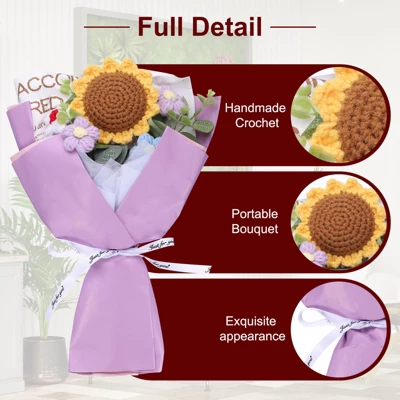 Unique Bargains Handmade Knitted Vibrant Color Low-Maintenance Artificial Flowers Purple