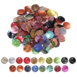 These flat round shell coin drop charm beads are versatile and can be used in various jewelry-making projects, such as DIY earrings, necklaces, and home decorations. They are lightweight, smooth, sturdy, and durable. One side features a real shell shine with a pearlized effect, while the other has a rustic shell texture. The beads come in a colorful mixed colors color and measure 1.5 cm in diameter. This package includes 150 pieces of flat shell beads, making it an excellent gift for DIY enthusiasts or as a holiday gift for others. Please confirm the color and size before placing an order.