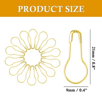 Durable Material: The metal gourd safety pins are made of good quality and durable metal tiny metal wire that easily fits into the stitches of various sizes of yarn. Can lock tightly.Size and Quantity: You will receive 100 pieces of bulb safety pins, sufficient quantity can meet your different occasions. Besides, each knitting marker measures 21mm/0.8 inches in length, and 9cm/0.4 inch in width.Versatile Uses: Small gourd safety pins are ideal for clothes, crocheting, quilting, knitting, crafting, clothing tags, etc. You can use them not only as stitch markers but also as tag pins.Decorative Function: These calabash safety pins feature a distinctive gourd shape and bright gold color, they can be used as decorative accessories for clothing, accessories, crafts, and more. They can enhance the style and add a touch of creativity to your projects.Easy to Store: These crochet stitch markers come with a clear plastic bag. It can bring you great convenience and make your creative work easier.Notes:1. Colors in the screen may not accurately reflect the true color due to individual computer monitor differences.2. Due to the different measurement ways or tools, there may exist slight deviations (ranging from 1-3cm).