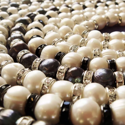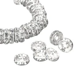 - Each spacer bead is inlaid with several mini rhinestones, clear and shining