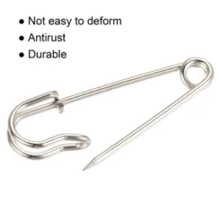 These safety pins can be used to secure many items, such as clothing, quilting items, blankets, and crafts. They are widely used in sewing, craft projects, and general household use. Made of metal, they are durable, rust-resistant, and corrosion-resistant, and they easily thread through fabric without damaging it. The needle tip cap protects your fingers from the needle tip and holds it securely in place during use. To use: First, press down on the pin body, then secure the item you want, and push the needle tip into the cap. Be careful with the pin’s tip when handling.