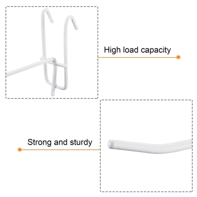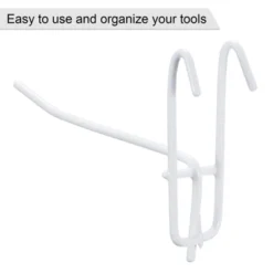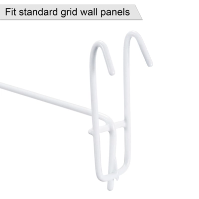 Grid wall hooks are used to organize or display your tools, crafts, retail products, etc. A great accessory for your shop, garage, office, and any indoor area. Made of iron with a rust-resistant coating, adding a modern element to your space. The high load-bearing capacity can accommodate most items hung on it. Easy to use, you can hang it on standard grid wall panels to easily display your items. Grid walls are different from slatted walls or pegboards, and these hooks are not suitable for slatted walls or pegboards.
