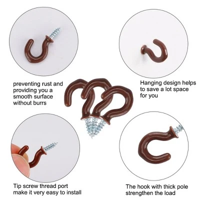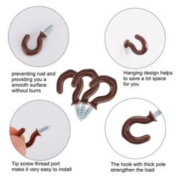 1. Made of metal with vinyl coated, stable and durable, preventing rust and providing you a smooth surface without burrs. 2. Hanging design helps to save a lot space for your kitchen, office, keeping your cups, pots and kitchen small items in order. created more pleasure work or living place. 3. Great for hanging indoors cups, mugs, pots, plants, hat, clothes etc in parlor, kitchen, office. 4. Perfect for hanging outdoors light weight items such as lights, curtains, ropes, chains, mugs, feeders, planters, and more. 5.The hook with thick pole strengthen the load,easy hanging light weight items. Recommend not to hang heavier items to avoid falling. 6. Easy installation, Tip screw thread port make it very easy to install, you can install the screw-in cup hook into wood, wall, ceiling. Specification: Procuct Name: Cup Hooks; Material: Metal; Package Include: 50(+/-2%) x Cup Hooks; Available Size: 38 x 20 x 6mm/1.5″ x 0.79″ x 0.24″(L*W*H); 47 x 25 x 7mm/1.85″ x 1″ x 0.28″(L*W*H); 55 x 29 x 7mm/2.17″ x 1.14″ x 0.28″(L*W*H); 22 x 11 x 4.5mm/0.87″ x 0.43″ x 0.18″(L*W*H); 30 x 15 x 5.3mm/1.18″ x 0.59″ x 0.21″(L*W*H); 33 x 18 x 6.5mm/1.3″ x 0.71″ x 0.26″(L*W*H); Notes: 1. Variability of 1-3mm is possible due to the measurement process. 2. Due to the shooting and screen setting difference, the color of the item may be slightly different from the pictures.
