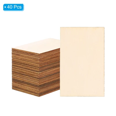 Unique Bargains Natural DIY Craft Rectangle Unfinished Crafted Wood Pieces 40 Pcs