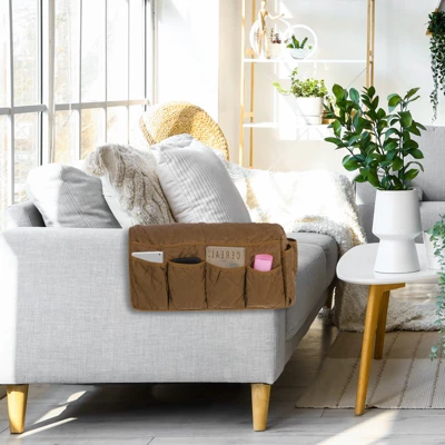 The armchair caddy is crafted from durable quilted cotton, designed to withstand daily use. Its non-slip base ensures stability on the armrest, preventing items from falling off. With 14 pockets of various sizes, the open-top design allows easy access to stored items and provides ample storage to declutter your sofa area. To use, simply place the organizer over the sofa or armchair armrest. It’s perfect for living rooms, family rooms, or any area with a sofa or armchair, helping to keep the space organized and items easily accessible.
