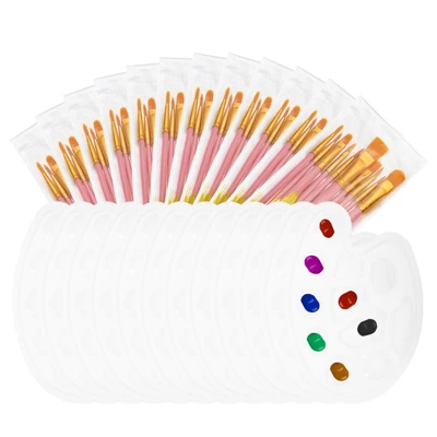 - The set includes: 120 paintbrushes in 10 sizes and 12 round paint pans