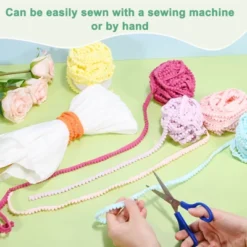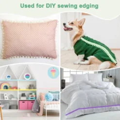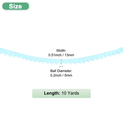 The pom pom trim ribbon is suitable for edge decoration of textiles, such as curtains, sofa covers, pillows, or the edges of furniture like bedside tables, cabinet doors, or table corners. It is not only suitable for accessories such as hat edges, cuffs, and scarves but can also be used to make DIY crafts, like bags, lanterns, balloons, etc. The pom pom trim for sewing is made of nylon yarn, it has good wear resistance and wrinkle resistance and can maintain its beauty and integrity for a long time. It is light and comfortable to touch, has good elasticity, and can quickly restore its shape to avoid deformation. The unique pompom design on the tiny ball fringe trim, with the decorative ball as the highlight, can add bright colors and rich textures to handmade decorations. The ball fringe trim is easy to apply and can be sewn on by a sewing machine or hand.