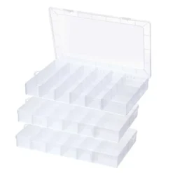 The clear plastic construction allows you to clearly see the contents of each compartment. Easily find what you need without rummaging. The durable, stackable design saves valuable desk or shelf space. Ideal for: cosmetics, nail polish, and beauty products; jewelry, watches, and accessories; office supplies like pens, clips, and rubber bands; and craft supplies like beads, sequins, and small tools.