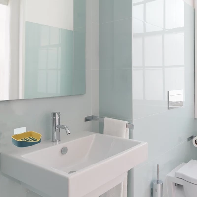 - The soap box is made of plastic. Easy to clean, beautiful, and practical
