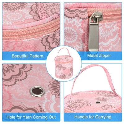 Unique Bargains Portable Crochet Knitting Sewing Craft Yarn Storage Bag Pink Flower 5.12″ X 5.51″